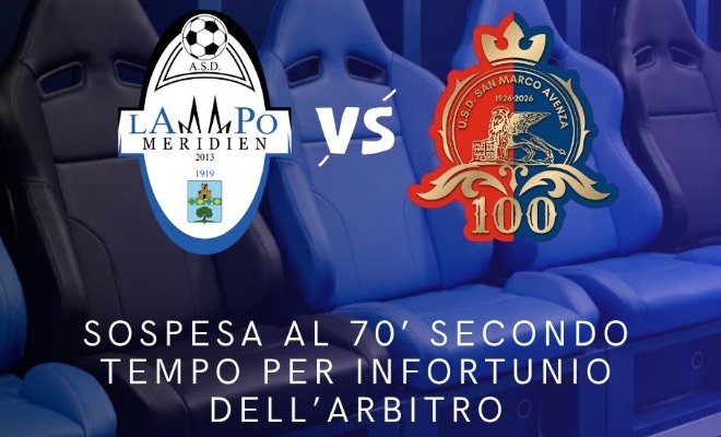 La sfida tra LampoMeridien e San Marco Avenza, valevole per la penultima giornata del Girone A di Promozione, è stata sospesa al 25' del secondo tempo a causa di un infortunio dell’arbitro, sul risultato di 1-1.